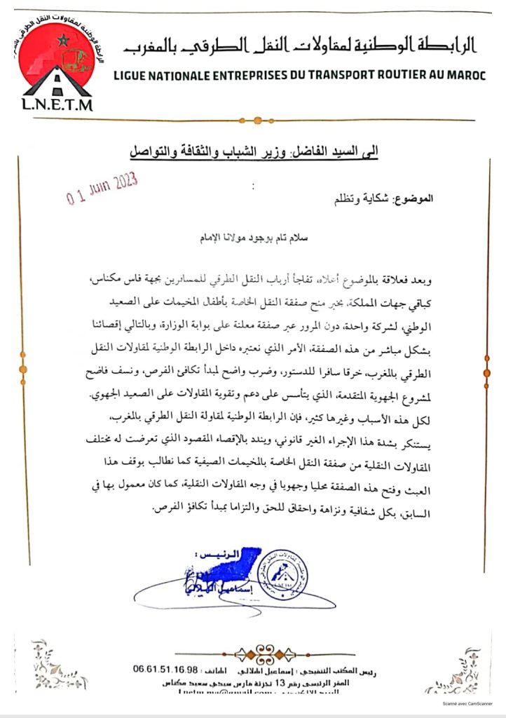 عبر العديد من أرباب النقل الطرقي بجهة فاس مكناس عن امتعاضهم واستنكارهم على الطريقة التي ثم بها تفويت صفقة نقل الاطفال المخيمات الصيفية على الصعيد الوطني ، لشركة واحدة دون المرور المساطر الجاري بها العمل حسب القوانين.