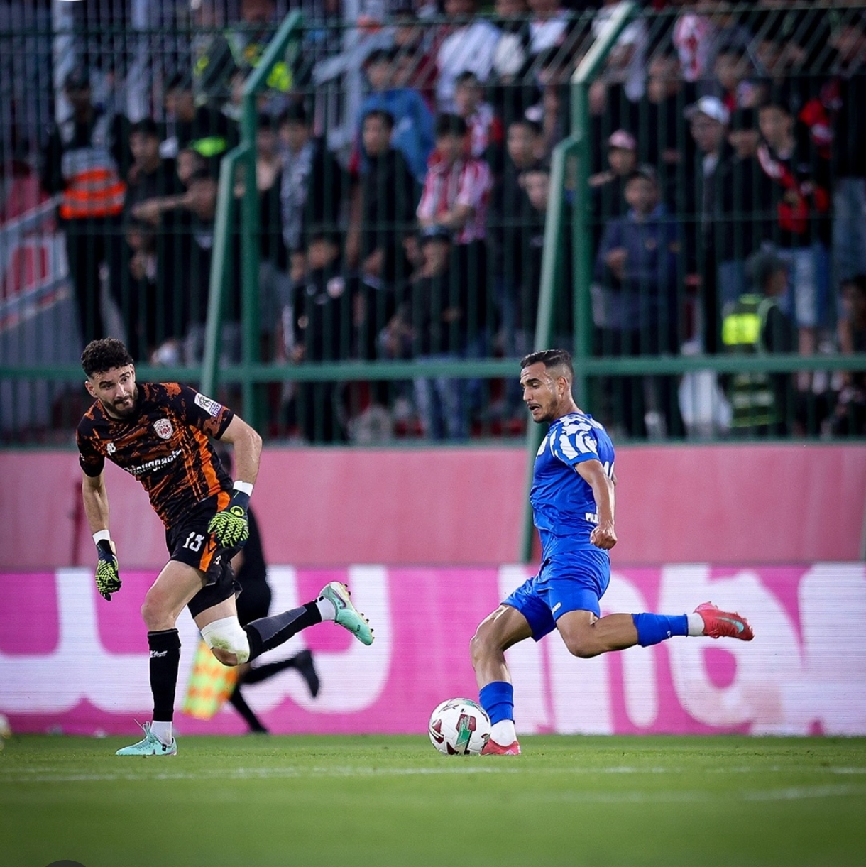 ​ورغم النتيجة، سرق جمهور النادي المكناسي الأضواء بحضور غفير وتراصّ في المدرجات، حيث كان في الموعد منذ صافرة البداية، مقدماً لوحات تشجيعية حماسية لم تتوقف طيلة التسعين دقيقة. وقد شهد الشوط الأول سيطرة واضحة لأصحاب الأرض، حيث توالت هجمات “الكوديم” التي افتقدت للمسة الأخيرة، وكان أبرزها ضياع هدف محقق عن طريق اللاعب العربي الناجي، لينتهي النصف الأول من اللقاء بالتعادل السلبي.