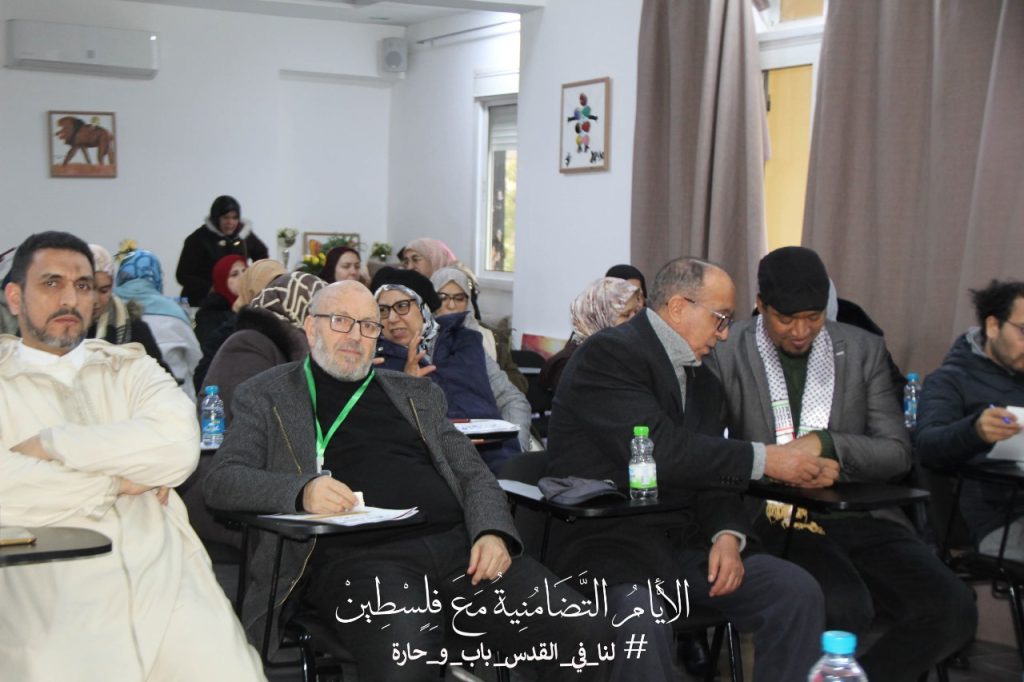 وفي كلمة تقديمية للندوة عرضت الدكتورة بشرى الإدريسي للحاضرين عن أهداف التنسيق الجمعوي وسياق تأسيسه والهيئات المشاركة فيه حيث أكدت أن هذه الأيام التضامنية مع الشعب الفلسطيني تأتي للتعبير عن التضامن والدعم الكامل للشعب الفلسطيني وقضيته العادلة، وكذا المساهمة في نشر الوعي بالقضية الفلسطينية سواء من حيث إبراز مكانتها كقضية إنسانية ودينية ووطنية، أو من حيث المحطات التاريخية التي عرفتها، و التذكير بأمجاد المغاربة و مساهمتهم في تحرير فلسطين زمن صلاح الدين الأيوبي، وبضرورة العمل على استرجاع حارة وباب المغاربة اللذان يفرض العدو الصهيوني سيطرته عليهما.
