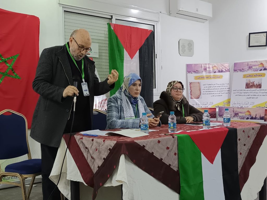 نظمت التنسيقية الجمعوية لدعم الشعب الفلسطيني بمكناس اليوم 09/02/2024 بمقر جمعية mpharma بمكناس ندوة صحفية افتتاحية للأيام التضامنية مع الشعب الفلسطيني والتي خصصت لاطلاع المجتمع المدني والرأي العام المحلي والوطني على برنامج فعاليات الأيام التضامنية مع الشعب الفلسطيني التي ستنظم ما بين 10 و 25 فبراير 2024 تحت شعار :” لنا في القدس باب و حارة”.