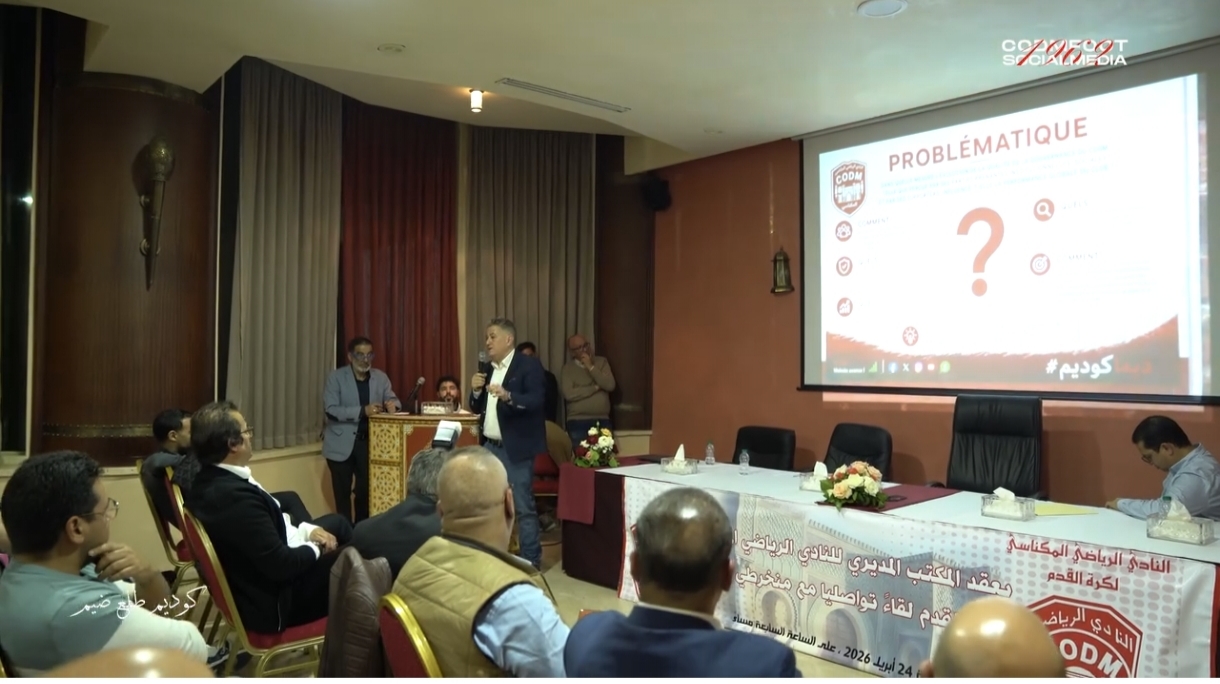 احتضن أحد الفنادق بمدينة مكناس، مساء يوم الجمعة، أشغال اللقاء التواصلي الذي نظمه المكتب المديري للنادي الرياضي المكناسي لكرة القدم، وهو الموعد الذي شكل محطة هامة لتكريس ثقافة الشفافية وربط المسؤولية بالمحاسبة التواصلية مع برلمان النادي. وقد تميز اللقاء بالعرض التقديمي المفصل الذي قدمه السيد عز الدين اليعقوبي، رئيس النادي، والذي استعرض من خلاله حصيلة “مرحلة الذهاب” بمقاربة رقمية وتقنية دقيقة، حيث لم يقتصر عرض السيد اليعقوبي على سرد النتائج الرياضية المحققة فحسب، بل قدم جردًا شاملاً للوضعية المالية واللوجيستيكية، واضعاً المنخرطين في صلب الإكراهات والتحديات التي واجهت تدبير شؤون الفريق خلال الشطر الأول من الموسم.