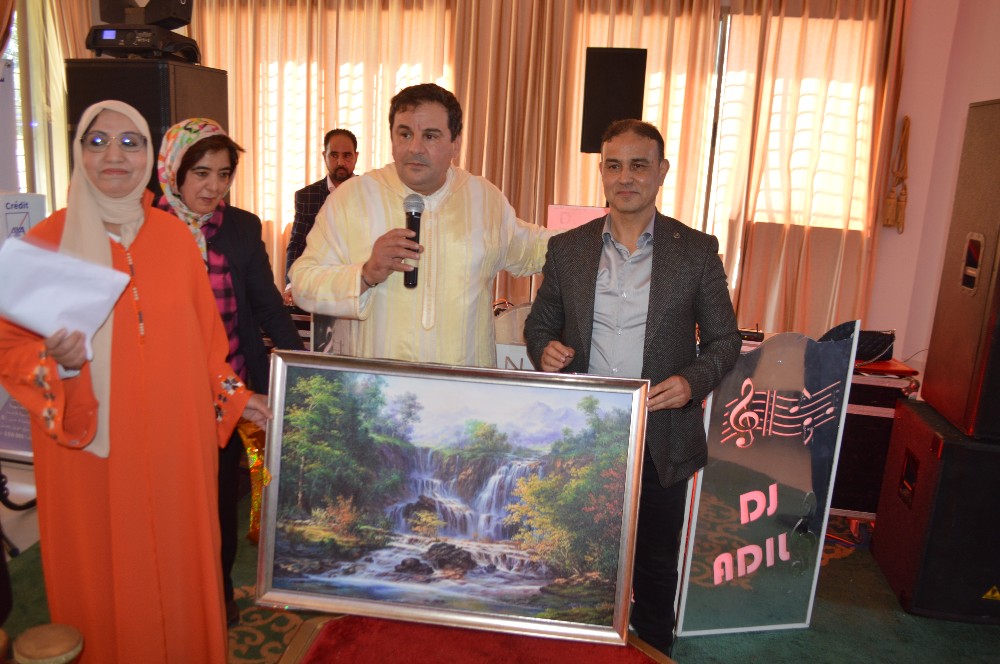 كما بالمناسبة سلمت لرئيس جماعة مكناس السيد جواد باحجي ، هدية رمزية من قبل جمعية الأعمال الاجتماعية لموظفي وموظفات جماعة مكناس ، عبارة عن لوحة فنية .