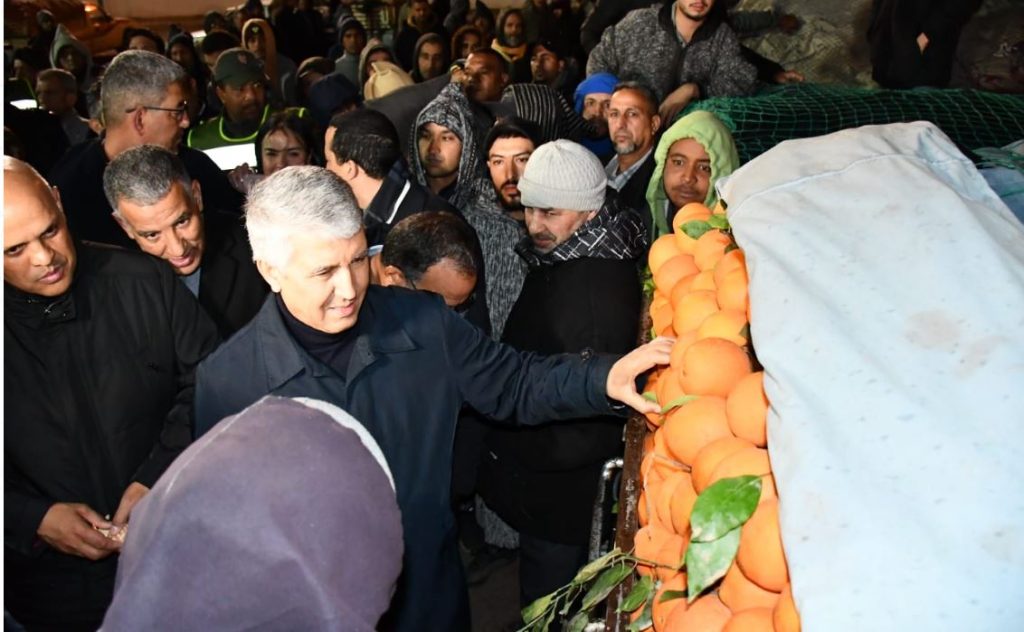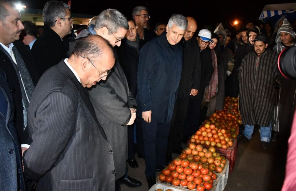 وكانت هاته الزيارة المفاجئة فرصة للاطلاع على وضعية تمويل السوق والاسعار المتداولة التي بدأت تتراجع تدريجيا منذ نهاية الأسبوع الماضي وذلك من خلال انخراط الفلاحين والتجار ومحطات التلفيف واجماعهم على التضحية والعمل مع اجهزة الرقابة للضرب على أيدي المحتكرين والمضاربين في انتظار تنزيل إجراءات داعمة للفلاح الذي يوفر قفة غداء المواطنين بأثمان معقولة وفي متناول جميع الطبقات.