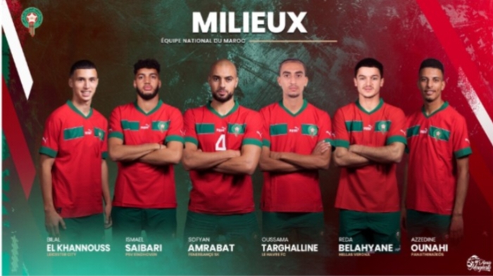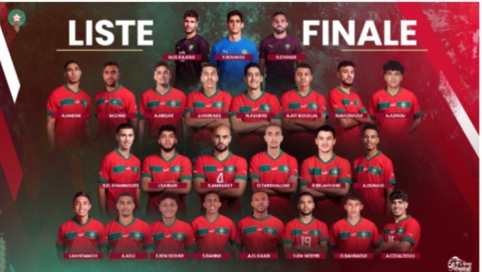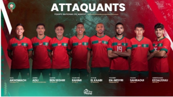الهجوم: إلياس أخوماش (فياريال)، عبد الصمد الزلزولي (ريال بيتيس)، أمين عدلي (باير ليفركوزن)، إلياس بنصغير (موناكو)، أيوب الكعبي (السد القطري)، يوسف النصيري (إشبيلية)، أسامة صحراوي (هيرنفين)، سفيان رحيمي (العين الإماراتي).